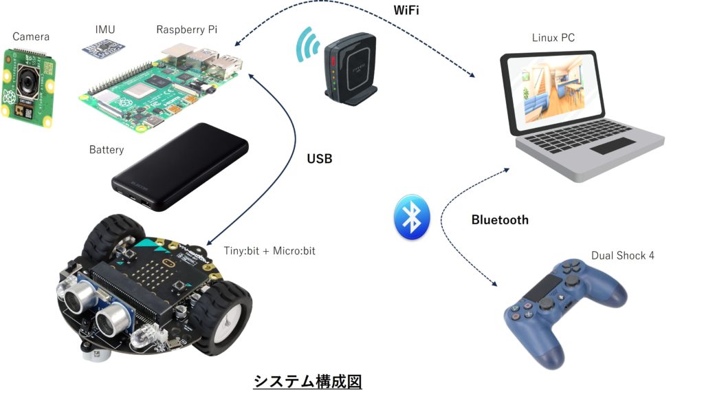 - メインコントローラ Linux PC(ubuntu220.04LTS@note PC)